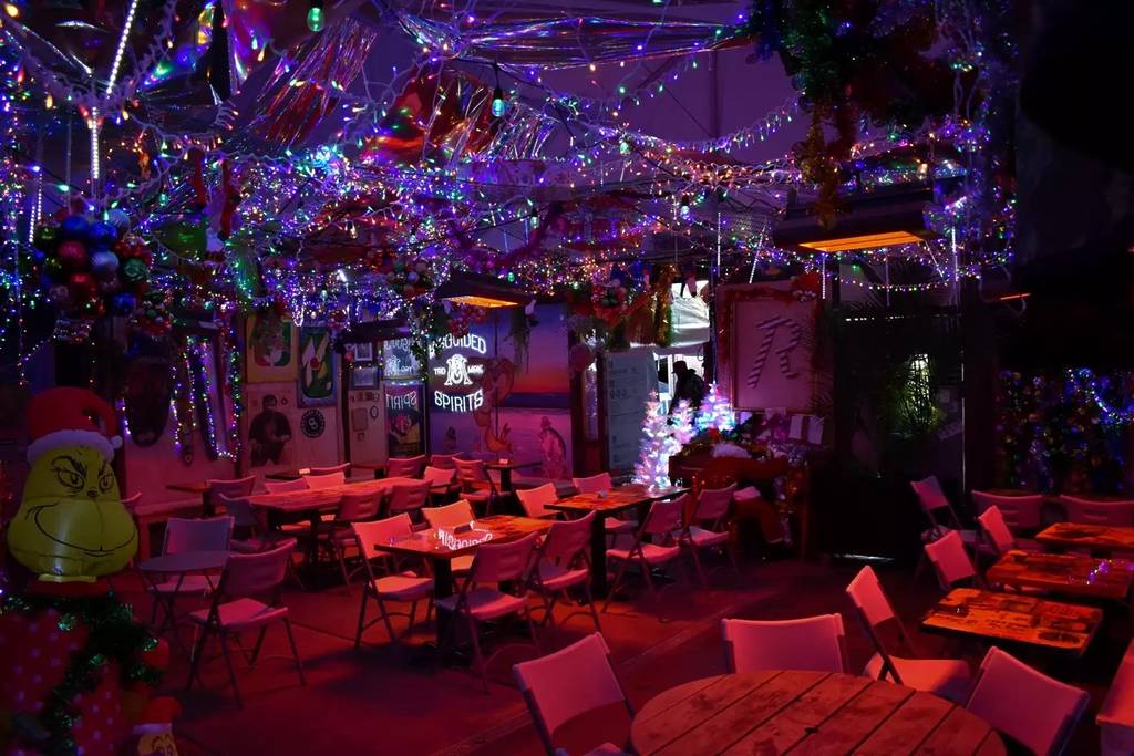 Every year, bars and restaurants across the city pull out all the stops—swapping their usual decor for snow-dusted cabins, twinkling winter wonderlands, and the kind of kitschy, candy-colored setups that practically beg for a photo.