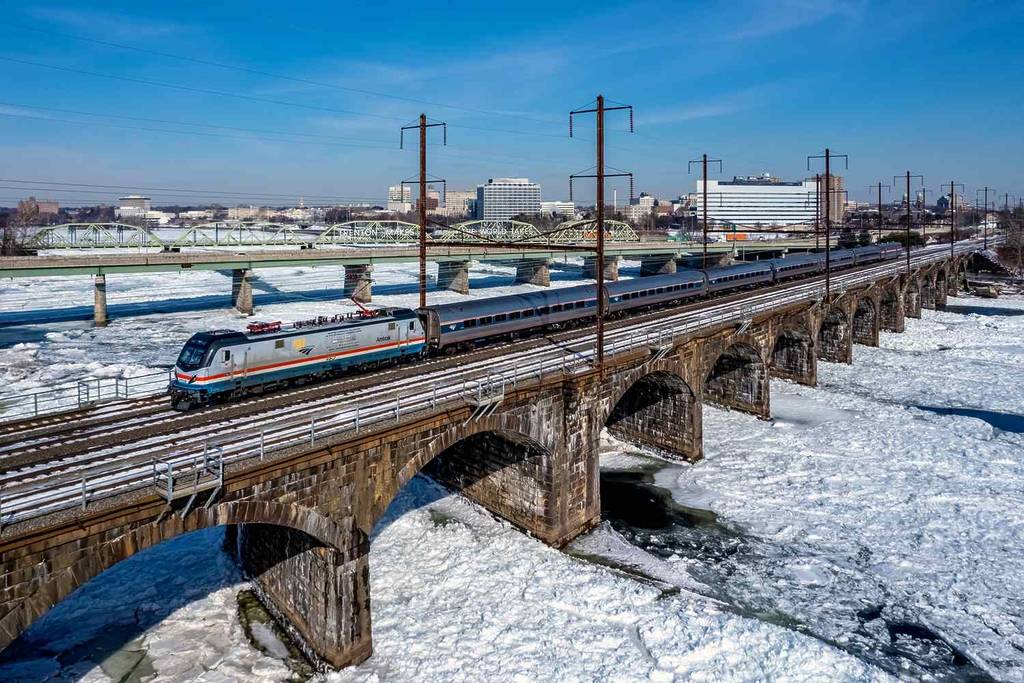 Diese fast 9,5-stündige Fahrt tauscht Wolkenkratzer gegen gefrorene Flüsse, Amish-Farmland und schneebedeckte Appalachen– und gipfelt in einer der spektakulärsten Eisenbahnleistungen des Landes: der legendären Horseshoe Curve.