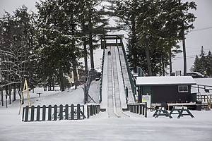 Mirror Lake se convierte en un patio de recreo invernal con patinaje al aire libre, paseos en trineo tirado por perros y, cuando las condiciones lo permiten, el famoso Toboggan Chute de Lake Placid, que lanza a los esquiadores desde una rampa de 9 metros directamente al lago helado.