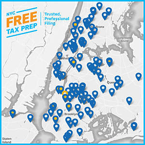 Ya disponible para los neoyorquinos, el mapa oficial NYC Free Tax Prep Map hace que sea muy fácil encontrar un lugar en tu barrio.
