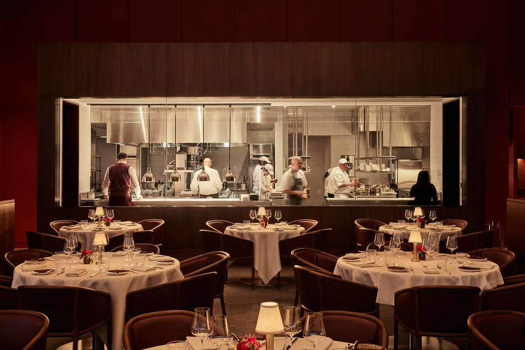 El primer turno, a las 18.00 h, incluye cinco platos: caviar Osetra, vieira con escarola, piñones y espuma de cítricos, rodaballo español, solomillo de ternera Wagyu y el famoso postre Nido de pájaro ártico del restaurante: parfait de queso de cabra, sorbete de arándanos y tuile de miel (375 $ por persona, 225 $ por persona si se añade vino).