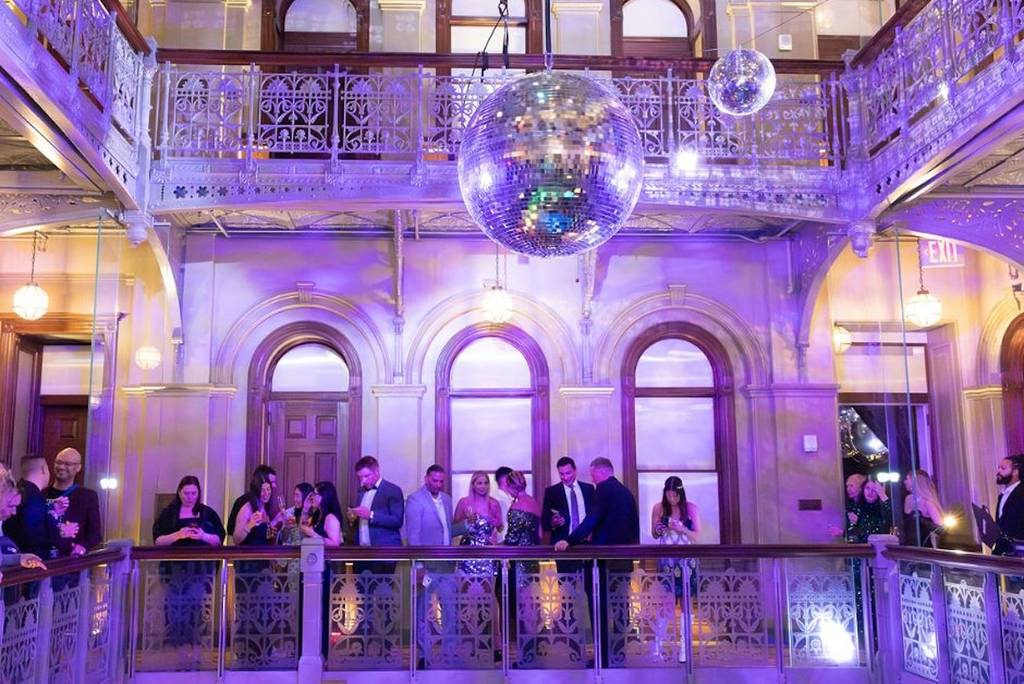 Temple Court organiza una «Silver Disco Dinner «, una celebración envolvente con barra libre de primera calidad, actuaciones aéreas y sesiones de DJ bajo el atrio de nueve plantas del hotel.