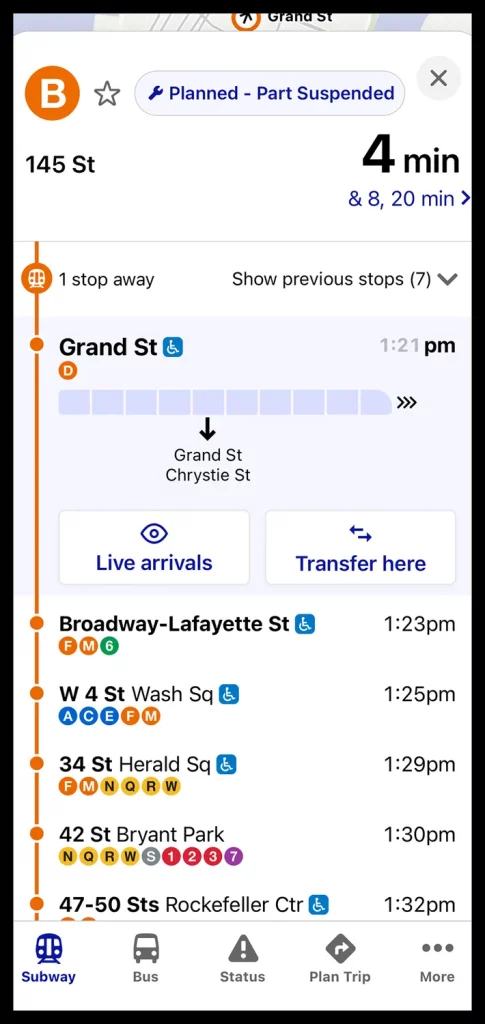 - Accesibilidad primero: un nuevo modo destaca las estaciones accesibles según la ADA y muestra el estado de los ascensores y las escaleras mecánicas en tiempo real.