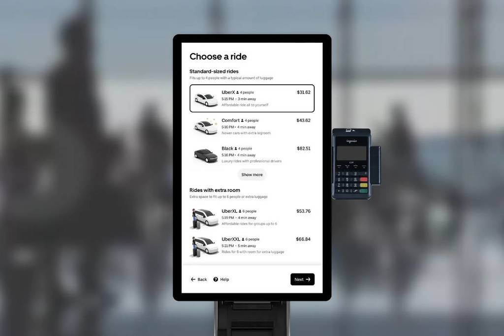 C’est un processus transparent. Les voyageurs peuvent utiliser les bornes de la même manière qu’ils utilisent l’ application mobile Uber, et sont également accueillis avec une variété d’options comprenant des trajets standard et XL, avec tous les montants de la course affichés. Le kiosque délivre des reçus papier contenant les informations relatives à la course. Après cela, il ne leur reste plus qu’à se rendre au lieu de prise en charge et à laisser leur voyage commencer ou se terminer.
