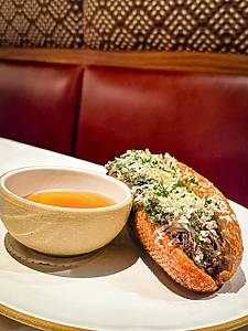 - A deeply satisfying braised beef sandwich with consommé and horseradish