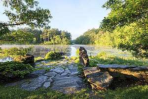 Located just 90 miles north of NYC, this Hudson Valley gem trades skyline views for misty meadows, sculpted rock formations, and glassy water scenes that shift with every turn of the path.