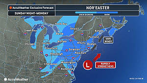 Le nuove previsioni dei meteorologi di AccuWeather dicono che una tempesta costiera in intensificazione dovrebbe portare neve dagli Appalachi al Medio Atlantico questo fine settimana, prima di diffondere forti nevicate in alcune zone della costa del New England. La brutta notizia per noi: c’è il rischio che la tempesta si intensifichi rapidamente, portando nevicate più intense in alcune zone del corridoio dell’Interstate 95, compresa New York City.