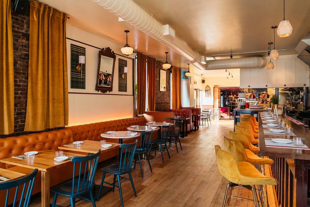 The menu draws inspiration from the modern pub culture of London–where Indian-inspired bar snacks nod to this tradition, including pani puri tuna tartare, house-made onion fritters prepared in the style of a bhaji, and wild boar sausage rolls–while the bar program focuses on classic cocktails and perfect pours.