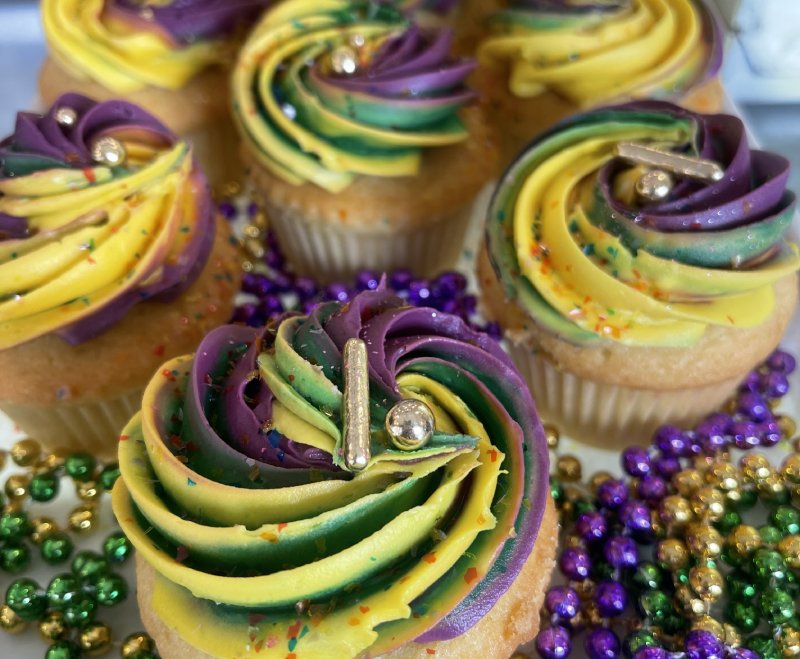 Het is moeilijk om nog King Cake te vinden in NYC (veel bakkerijen verkopen het tot en met januari na Driekoningen), maar Make My Cake Bakery in Harlem maakt deze schattige cupcakes met Mardi Gras-thema! En misschien vind je wel de klassieke baby erin…