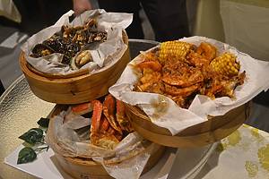 “Voor een vaste prijs van $90 kun je zoveel vers gekookte zeevruchten bestellen als je wilt, met keuzes als jumbo krabbenpoten, in de pan gebakken zalm, Cajun knoflookbotergarnalen, kreeftentaart en calamares, plus bijgerechten zoals frietjes, broccoli en loempia’s. Als je meer wilt dan je neus lang is, kun je een buffet bestellen. Als je het onderste uit de kan wilt, kun je wat meer geld uitgeven (rond de $35) en genieten van alles van het vismenu plus drie verschillende soorten kreeft. Let op: als je je verjaardag met vrienden viert, eet je gratis.