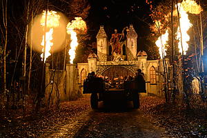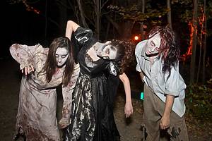 Os visitantes começam com o Haunted Hayride, uma carroça puxada por trator que serpenteia pela floresta enquanto zumbis, monstros e efeitos pirotécnicos saltam das sombras.