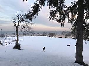 O Nyack Beach State Park oferece caminhadas no inverno, caminhadas com raquetes de neve ou simplesmente observar o rio congelado passar por baixo dos penhascos.