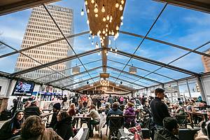 - Um bar ao ar livre que serve vinho quente, bebidas quentes, cidra dura e muito mais