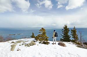 É a paisagem de inverno definitiva bem diante de seus olhos... penhascos de granito que se erguem sobre lagos congelados, ondas batendo contra linhas costeiras geladas e mirantes de quilômetros de largura que se tornam ainda mais icônicos.